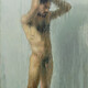 Noted by Lx Leckford .Australian painter Peter Churcher, Shower Screen VIII, 2019. Oil on canvas, 195 x 114 cm.