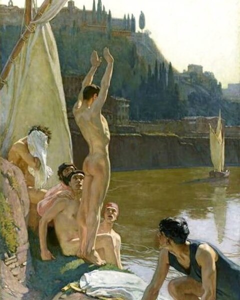 'Bathers on the Tiber' by Georges Paul Leroux, c.1909 at Beauvais Museum in France. Of all the excuses artists have for naked people in their paintings, going for a swim (and too poor to own swimming costumes) seems the least contrived.